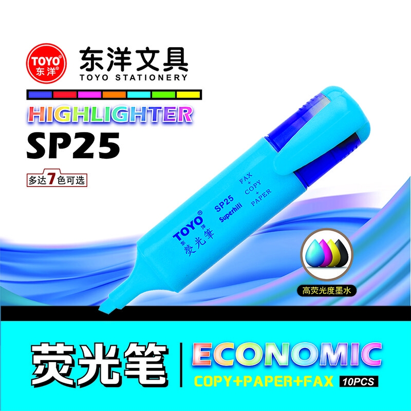 東洋(TOYO)熒光筆SP25簡約大容量彩色手賬標記筆學生小清新劃重點手賬記號筆文具 藍色