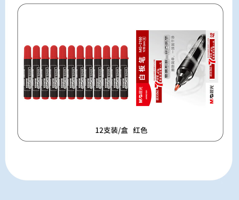 晨光(M&G)文具 可擦白板筆 單頭辦公會(huì)議筆 易擦筆 MG2160 2.5mm 紅色