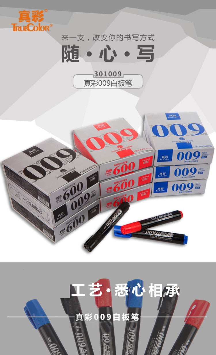 真彩009白板筆經(jīng)濟(jì)型白板筆易擦辦公白板筆可擦白板筆 紅色 1支