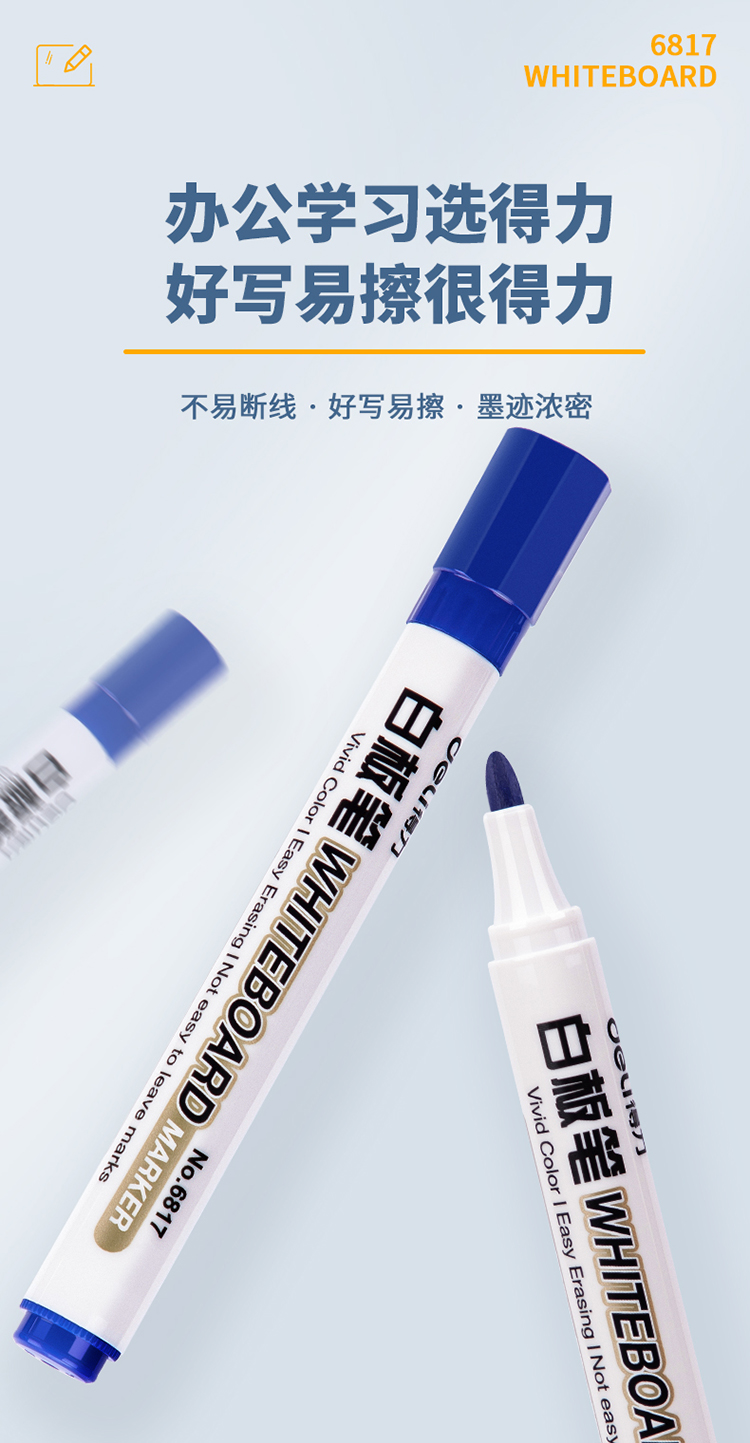 得力(deli)白板筆 色澤明亮可擦易擦 藍(lán)色 6817(新老款隨機(jī)發(fā)貨)