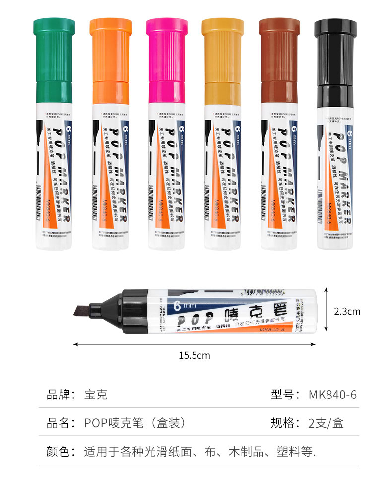 寶克(BAOKE) 6mm 紅色 POP嘜克筆 海報(bào)廣告畫筆 彩色馬克筆記號(hào)筆 MK840