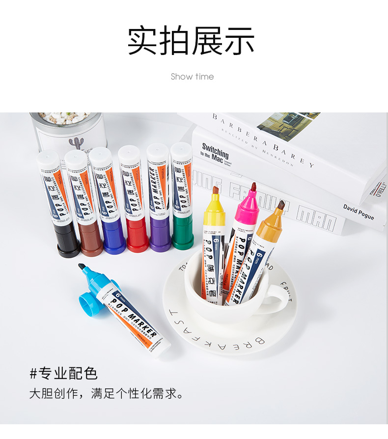 寶克(BAOKE) 6mm 黃色 POP嘜克筆 海報廣告畫筆 彩色馬克筆記號筆 MK840