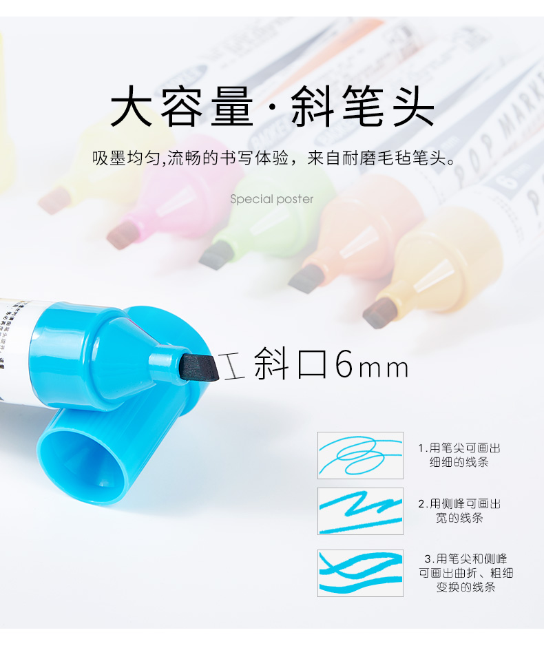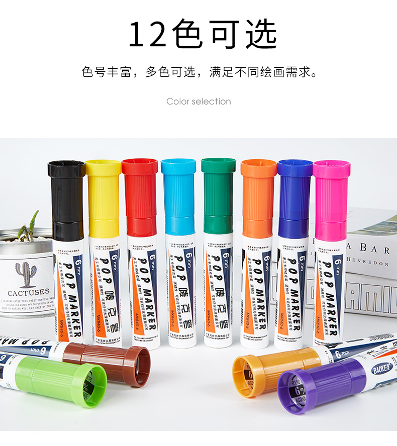 寶克(BAOKE) 6mm 藍(lán)色 POP嘜克筆 海報廣告畫筆 彩色馬克筆記號筆 MK840