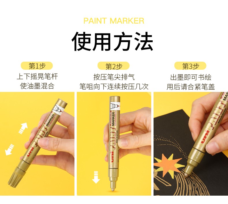 uni三菱 PX-20油漆筆工業(yè)筆 中字記號(hào)筆 婚禮簽名筆 多用途油漆筆 不掉漆(單支裝)金色