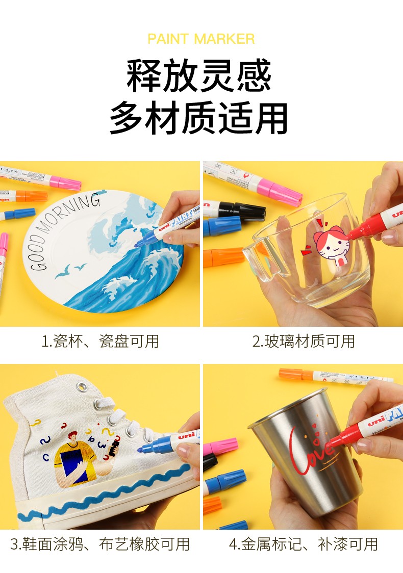 uni三菱 PX-20油漆筆工業(yè)筆 中字記號(hào)筆 婚禮簽名筆 多用途油漆筆 不掉漆(單支裝)黑色