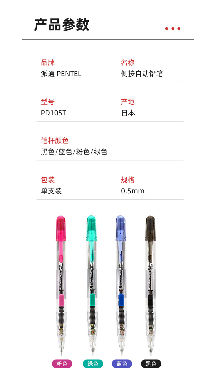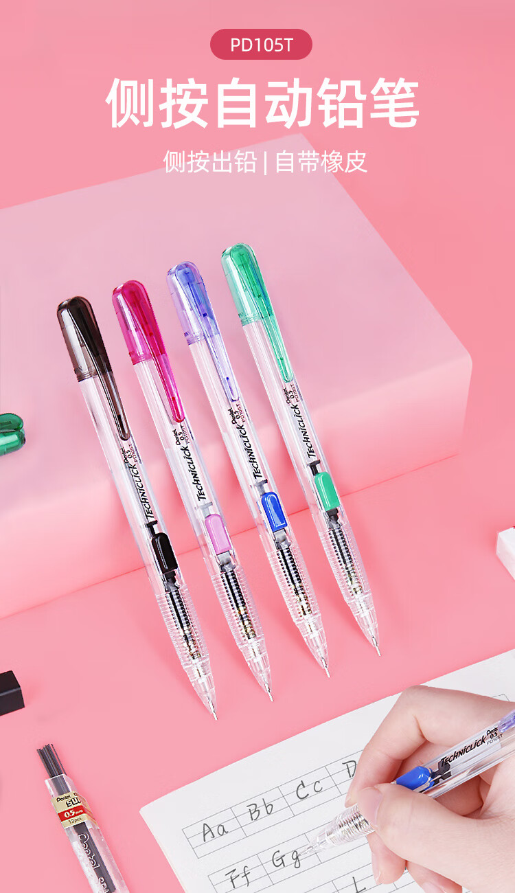 派通(Pentel)0.5側(cè)按式活動鉛筆 學(xué)生繪畫自動鉛筆帶橡皮PD105T 計(jì)價(jià)單位:支