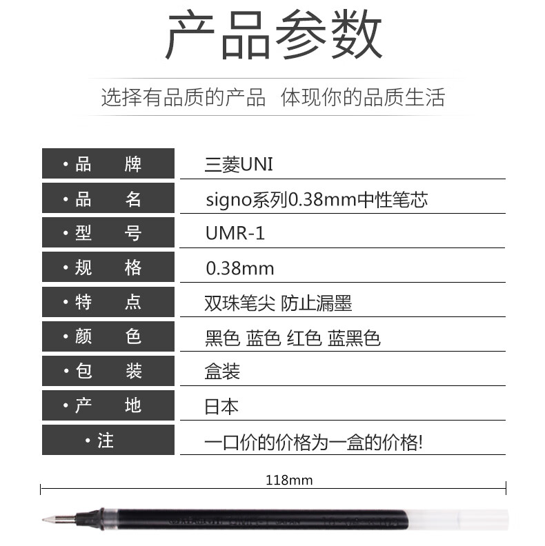 三菱(Uni)UMR-1中性筆芯(適用于UM-151筆)0.38mm 黑色