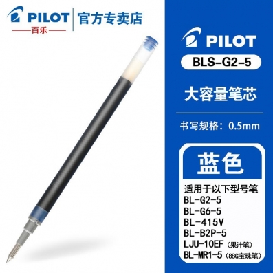 百樂(PILOT)BLS-G2-5 按動中性筆替芯 簽字筆啫喱筆水筆芯(適用BL-G2)0.5mm 藍色
