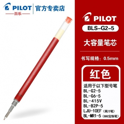 百樂(lè)(PILOT)BLS-G2-5 按動(dòng)中性筆替芯 簽字筆啫喱筆水筆芯(適用BL-G2)0.5mm 紅色