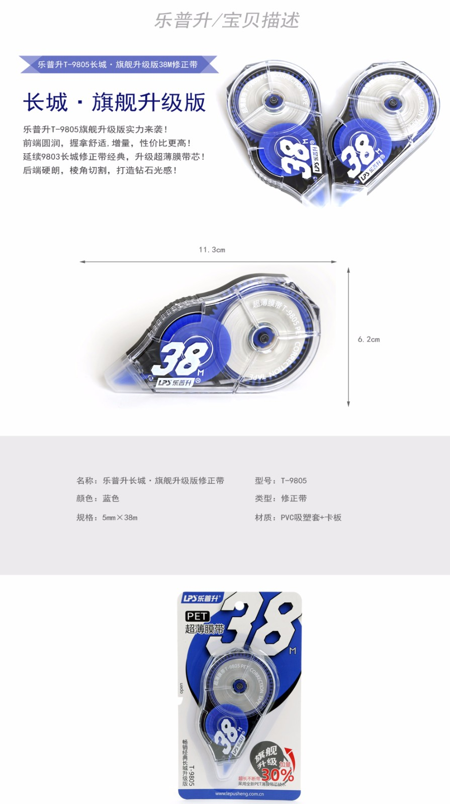 樂普升(LPS) 修正帶順滑不斷帶涂改帶 錯(cuò)別字改正帶 復(fù)印無痕覆蓋力強(qiáng)修改帶 學(xué)生用品辦公文具 T-9805(5mm*38m)