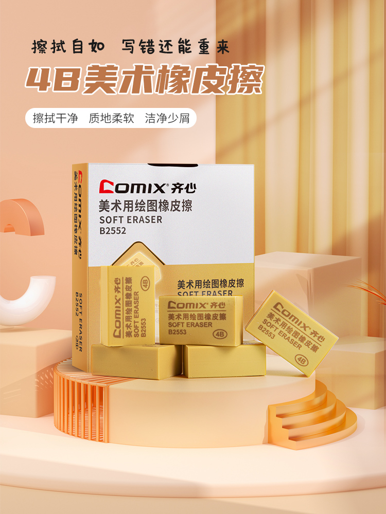 齊心(Comix)4B橡皮擦 美術(shù)繪畫考試橡皮 學(xué)生用品黃色小號B2552