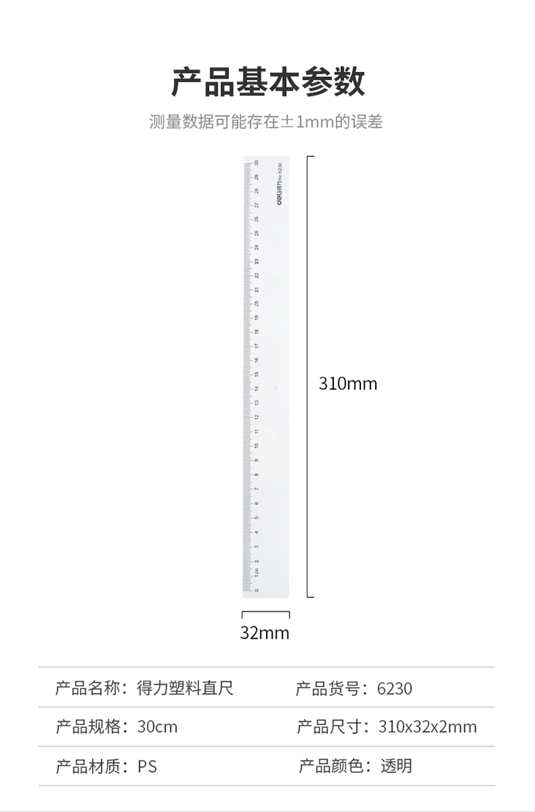 得力(deli)30cm辦公通用直尺 測(cè)量繪圖尺子 辦公用品 6230