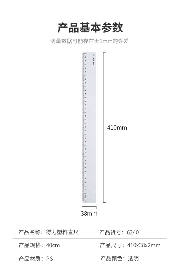 得力(deli)40cm辦公通用直尺 測(cè)量繪圖尺子 辦公用品 6240