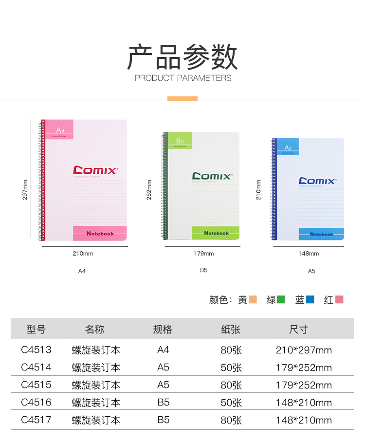 齊心(Comix)線圈軟面抄筆記本子文具/軟抄本/記事本 B5/80張/1本裝 C4517