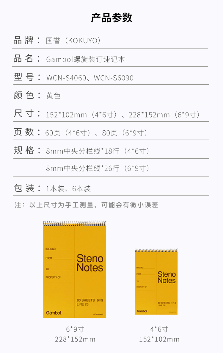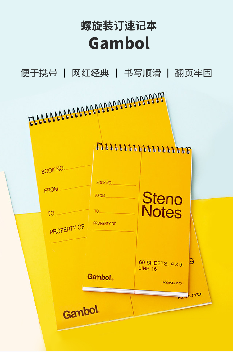 國(guó)譽(yù)(KOKUYO)螺旋筆記本子Gambol渡邊豎翻本線圈上翻本速記本6x9寸 8mm中央分欄線 80張/本 1本 WCN-S6090