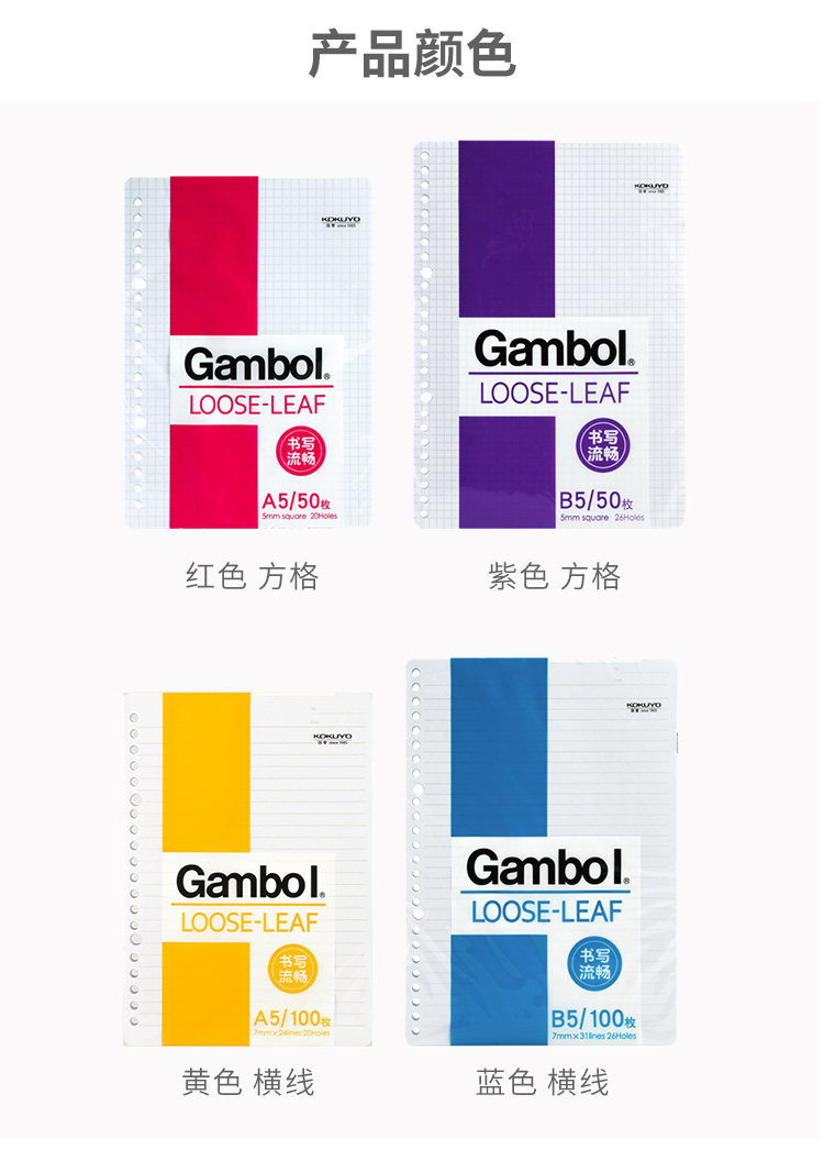 國譽(yù)(KOKUYO)A5活頁紙Gambol渡邊活頁本替芯筆記本子活頁紙內(nèi)頁 7mm橫線 100張1本 WCN-LL1101N