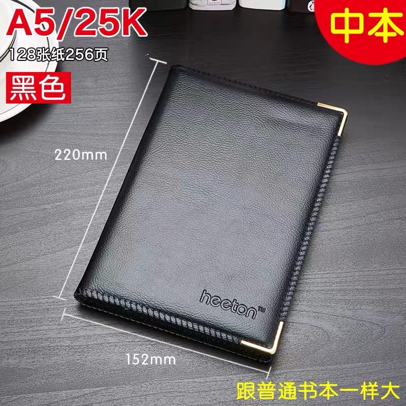 喜通(heeton)25-358經(jīng)典縫邊皮質(zhì)記事本筆記本 A5-黑色/單本