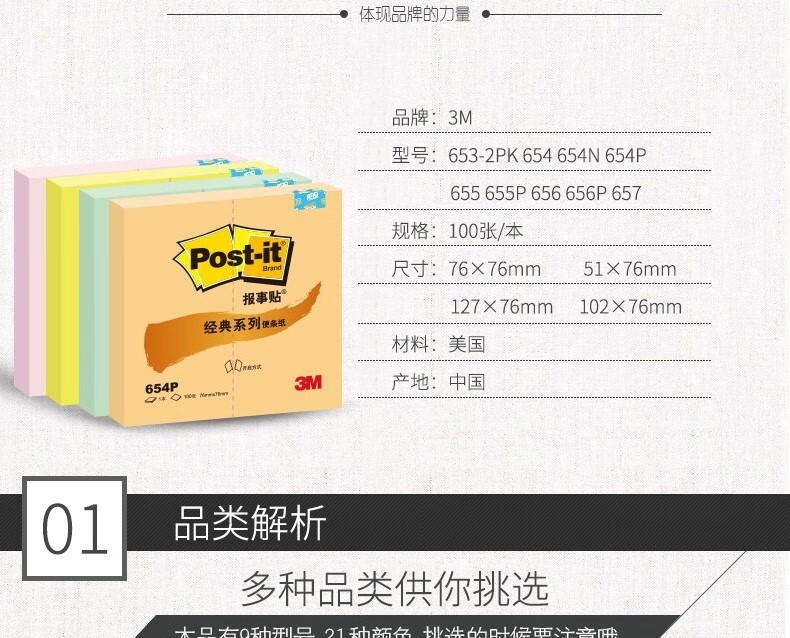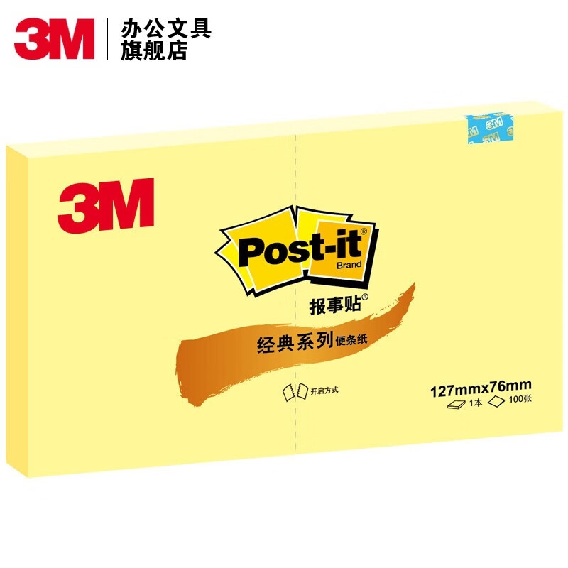 3M 便利貼 便條紙/報事貼/便簽紙/便簽本 辦公用品 655 黃色經(jīng)典系列 100張/本 76x127mm