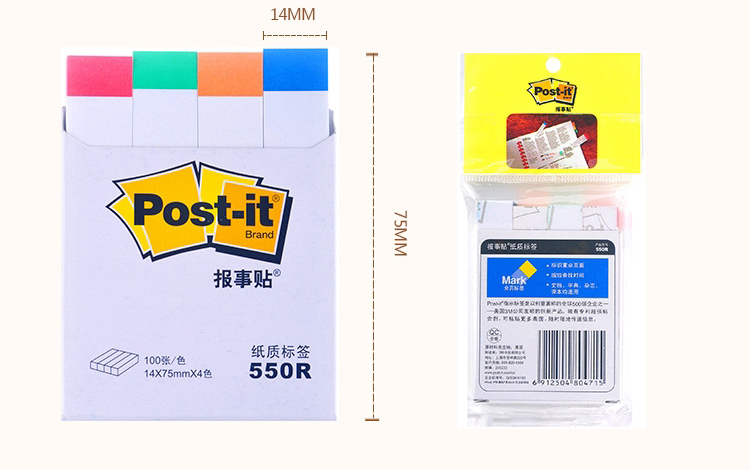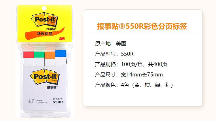 3M 3M 便利貼 報(bào)事貼/便條紙/記事貼/便簽紙/便簽本 辦公用品 550R 文件指示標(biāo)簽紙 【550R 4色標(biāo)簽】400張