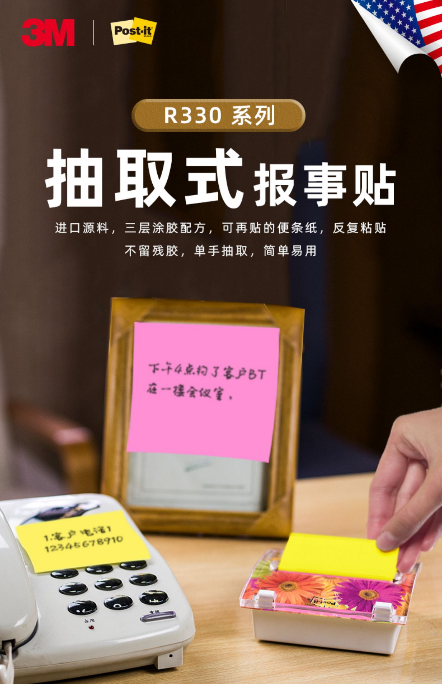 3M報(bào)事貼R330抽取式便條紙辦公學(xué)生用便利貼記事便簽本重點(diǎn)備忘錄標(biāo)簽紙 創(chuàng)意吸盤底座套裝 水晶底座