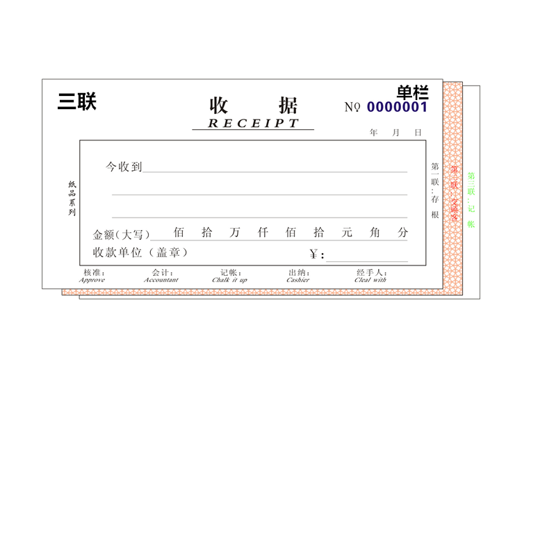 主力 收款收據(jù) 無碳復(fù)寫收據(jù)自帶墊板 0503 48K三聯(lián)單欄 單本