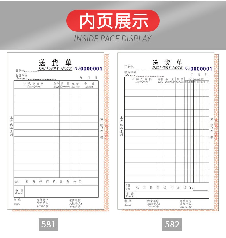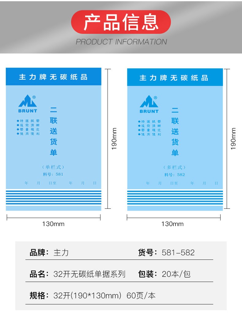 主力送貨單 二聯(lián)多欄無碳復(fù)寫紙銷貨憑證記錄表單 財(cái)會(huì)用品單據(jù)本 物流送貨表 32k 單本