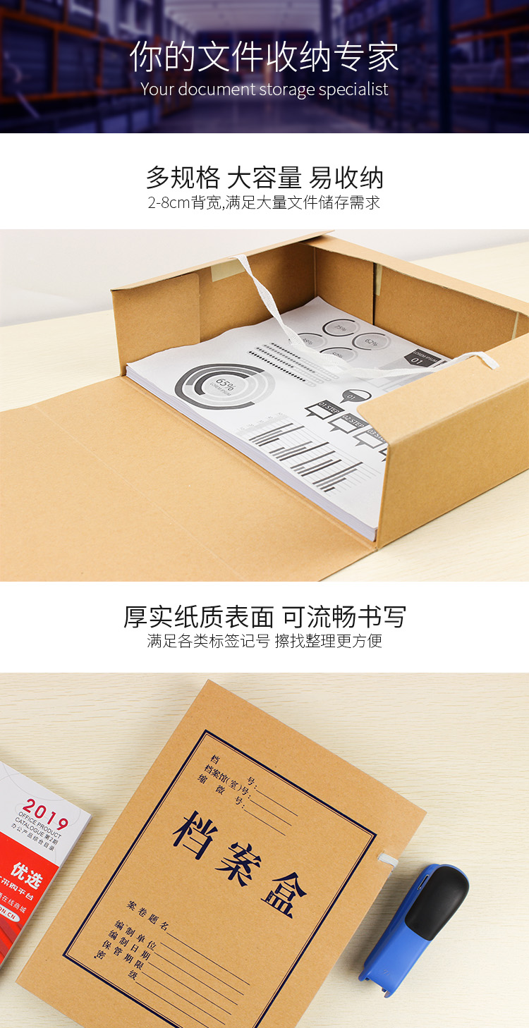 德仕通(dston)A4加厚優(yōu)質(zhì)檔案盒牛皮紙 文件收納盒 財務(wù)憑證盒 無酸紙 厚度2cm約裝130張A4紙