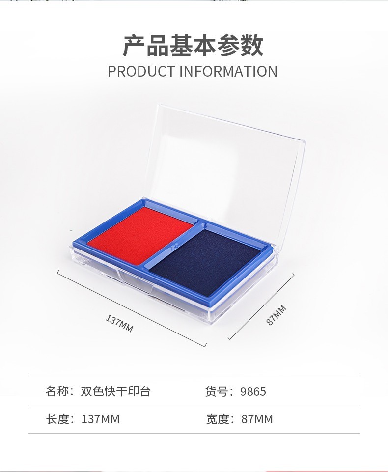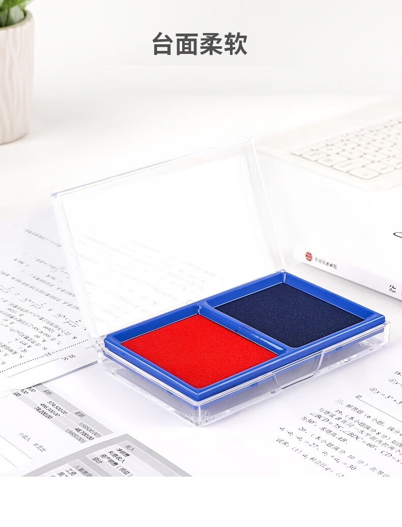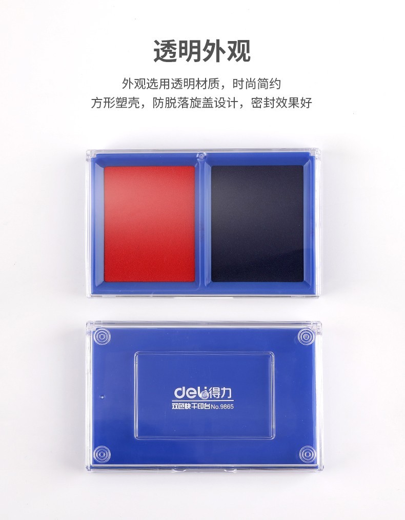 得力(deli) 雙色快干印臺(tái)/印泥 紅+藍(lán)色 財(cái)務(wù)辦公 9865 一盒兩色