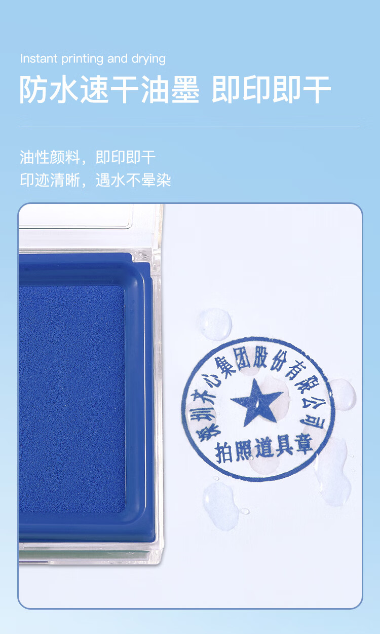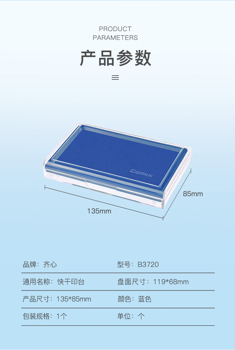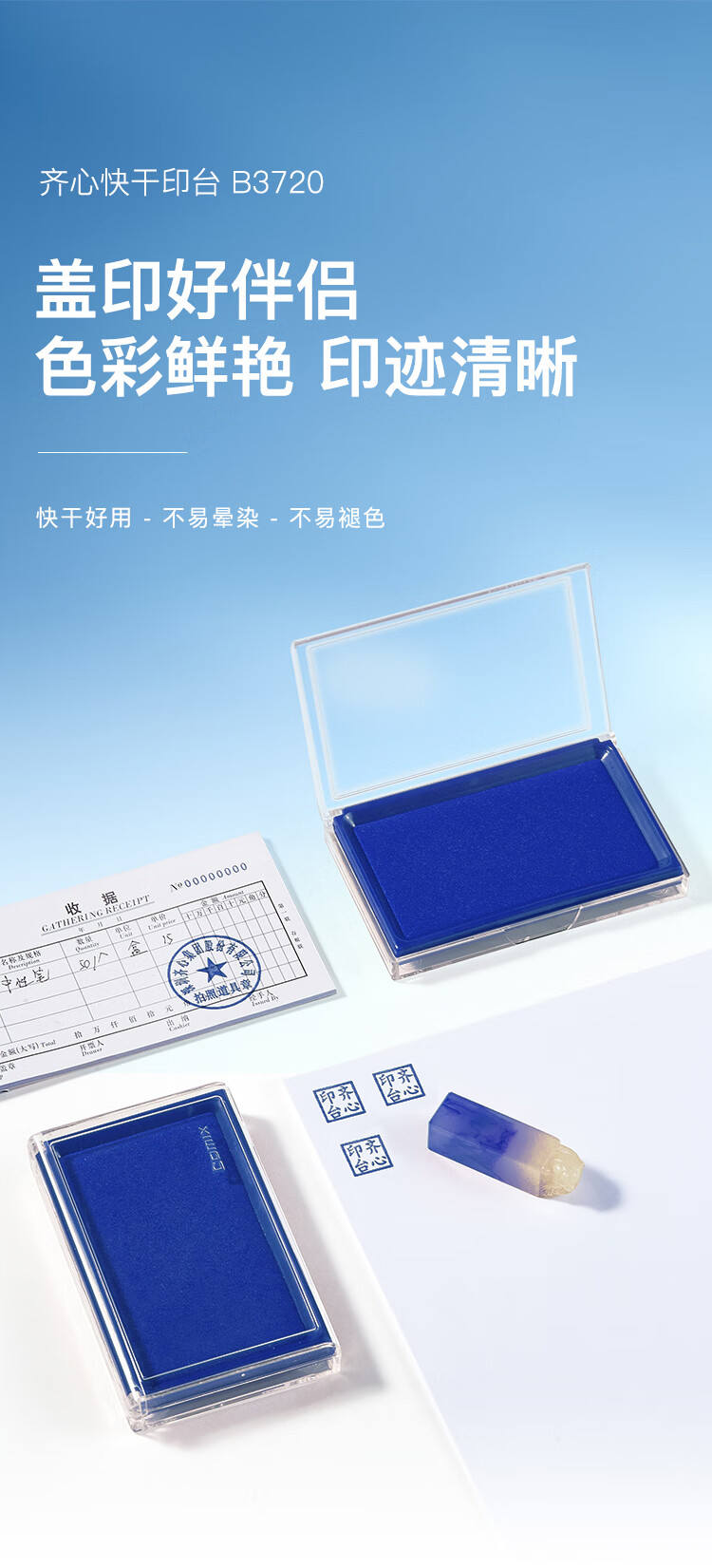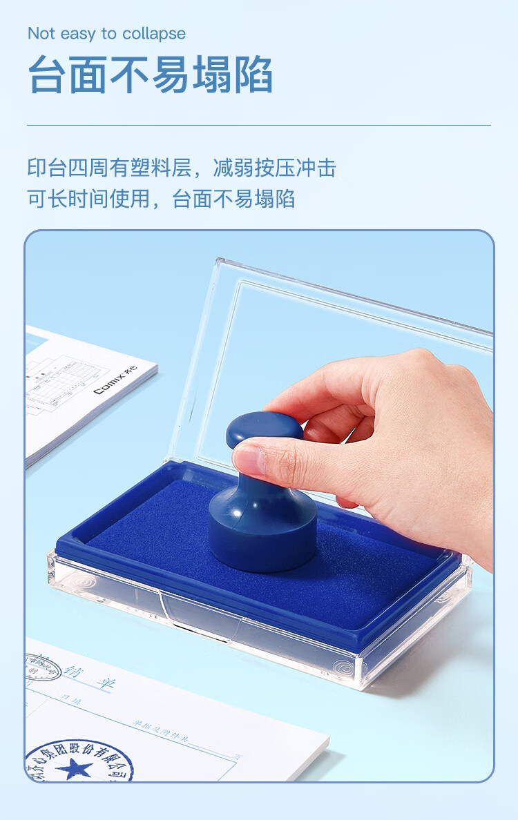 齊心(Comix)135*85mm方形防水快干印臺(tái)印泥 辦公用品 藍(lán)色B3720