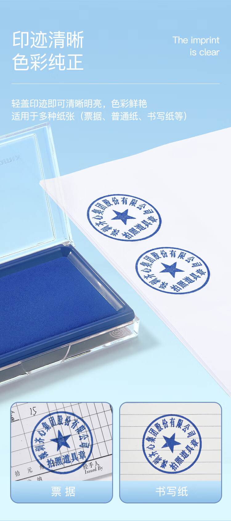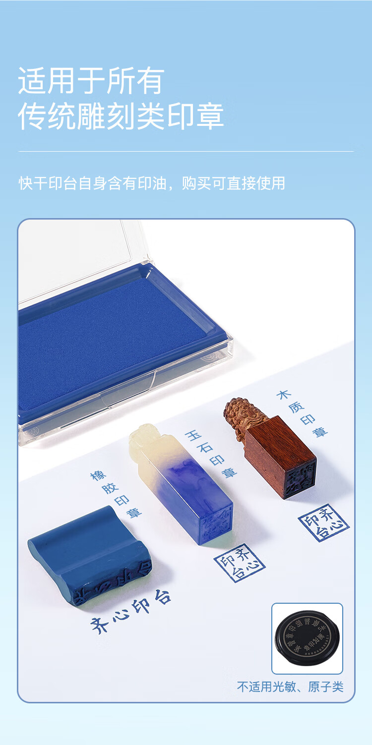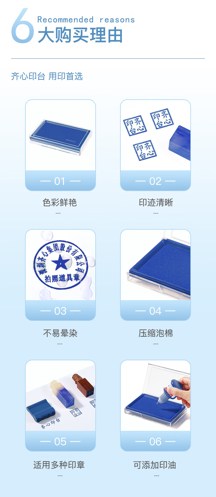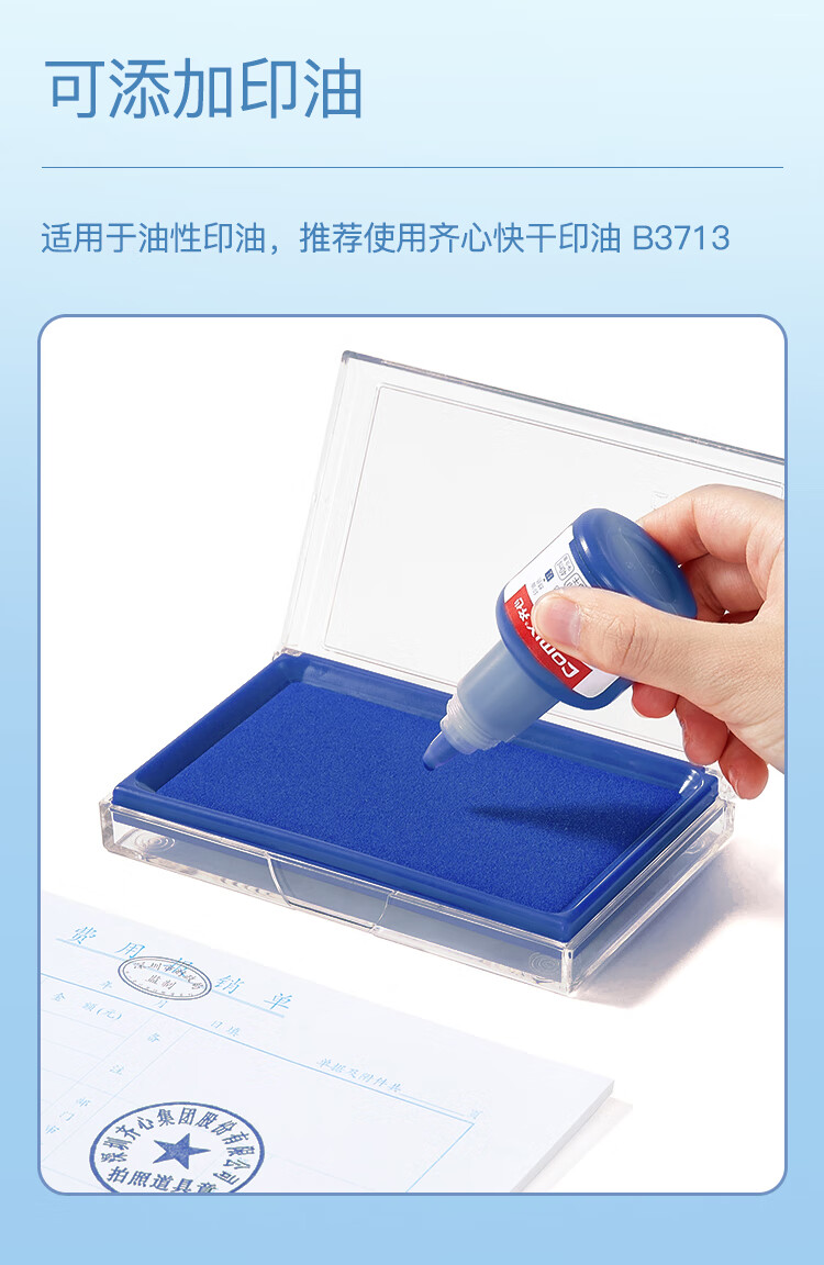 齊心(Comix)135*85mm方形防水快干印臺(tái)印泥 辦公用品 藍(lán)色B3720