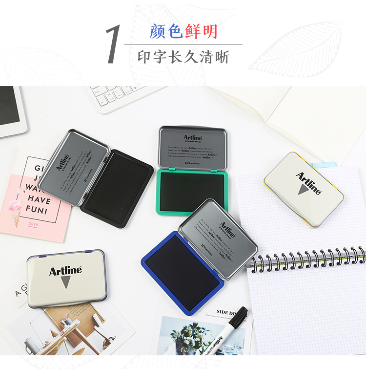 旗牌(Shachihata)Artline 辦公財(cái)務(wù)銀行會(huì)計(jì)速干快干水性印泥橡膠章通用印臺(tái) 40*63mm 小號(hào) 黑色 EHJ-1