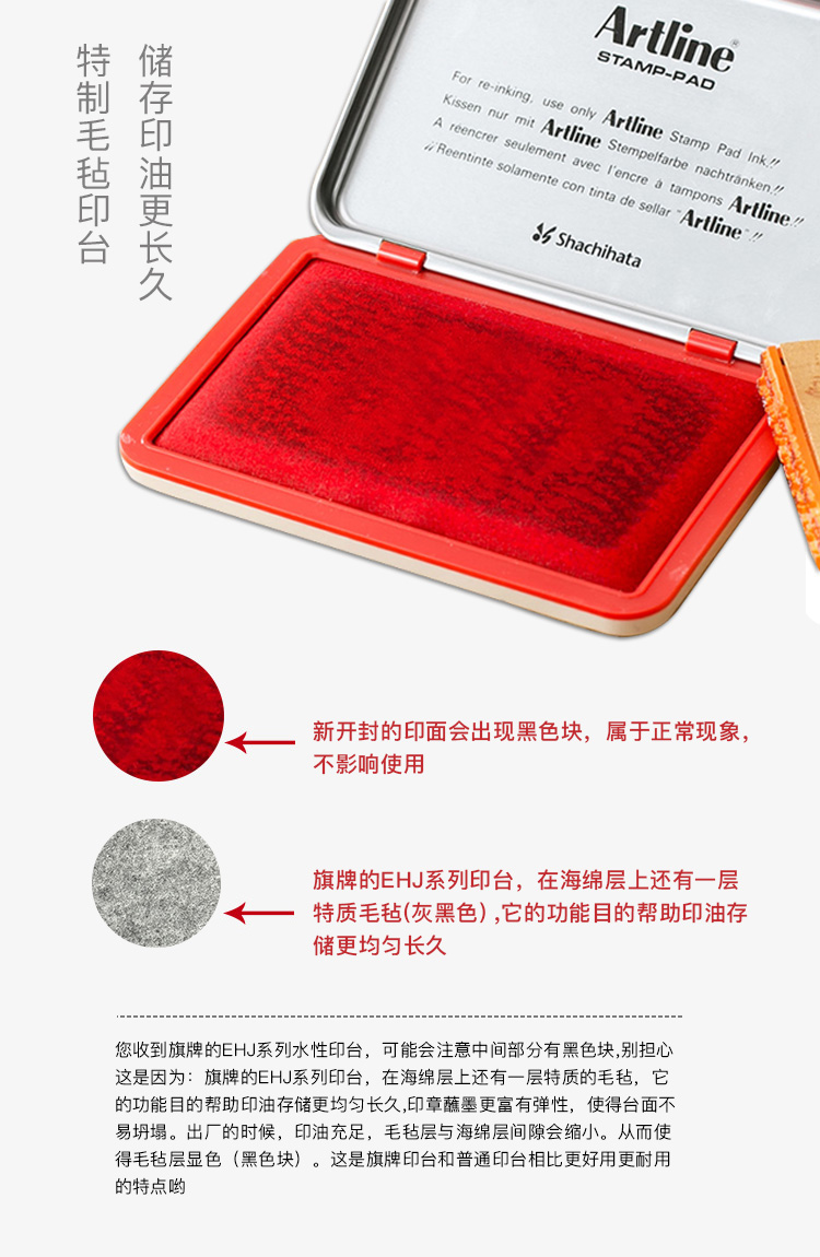 旗牌(Shachihata)Artline 辦公財(cái)務(wù)銀行會(huì)計(jì)速干快干水性印泥橡膠章通用印臺(tái) 56*90mm 中號(hào) 紅色 EHJ-2