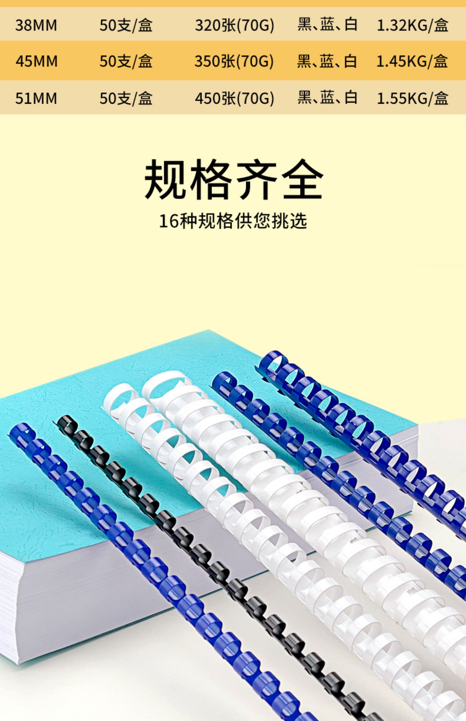 德仕通 A4裝訂膠圈塑料21孔裝訂耗材裝訂機(jī)圓形膠圈夾條文件會(huì)議記錄裝訂圈財(cái)務(wù)憑證訂條 16mm 100支/盒 顏色隨機(jī)