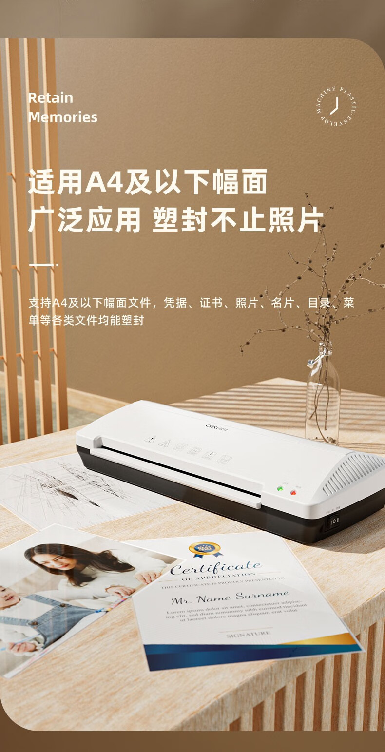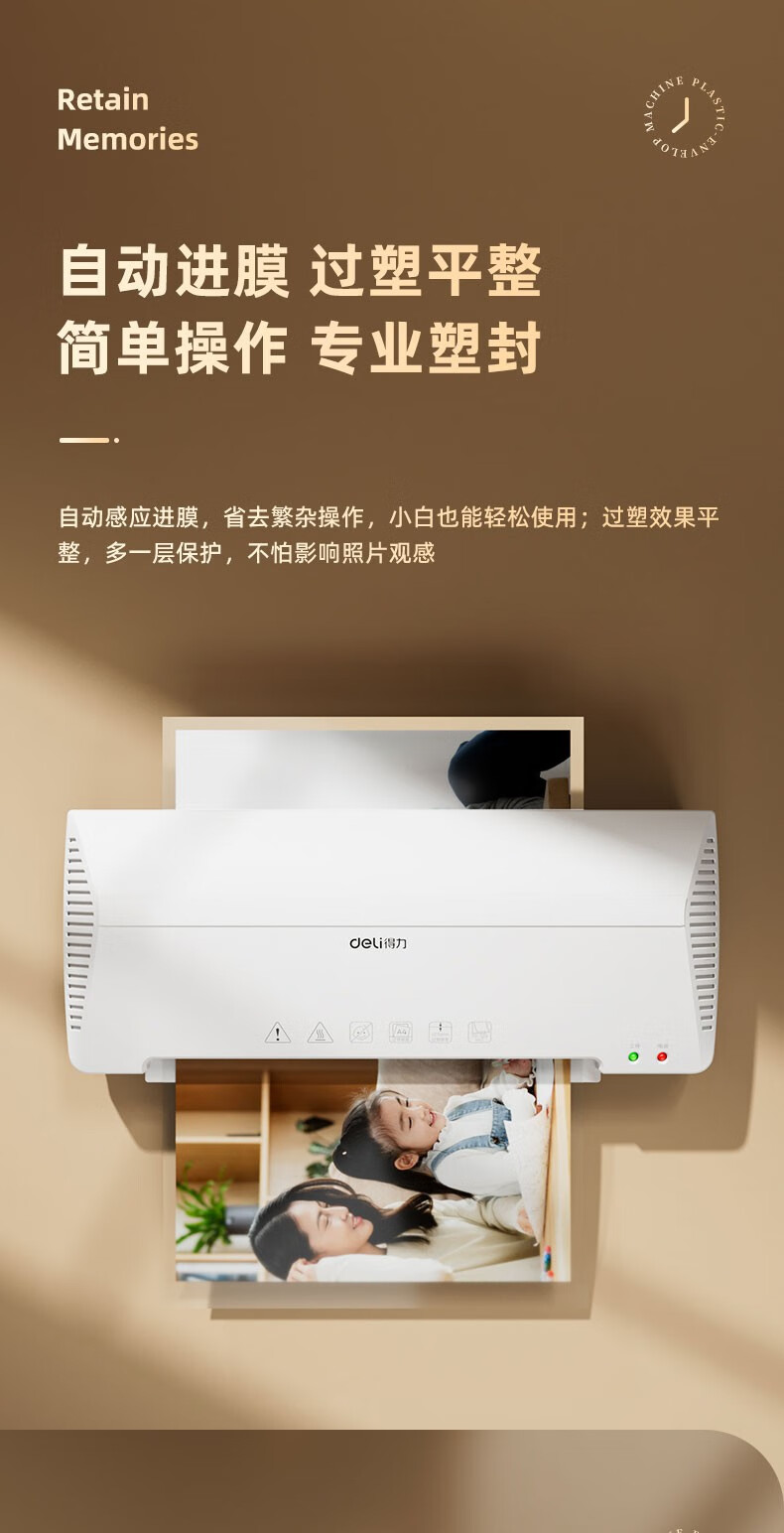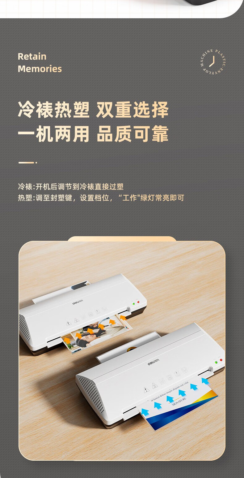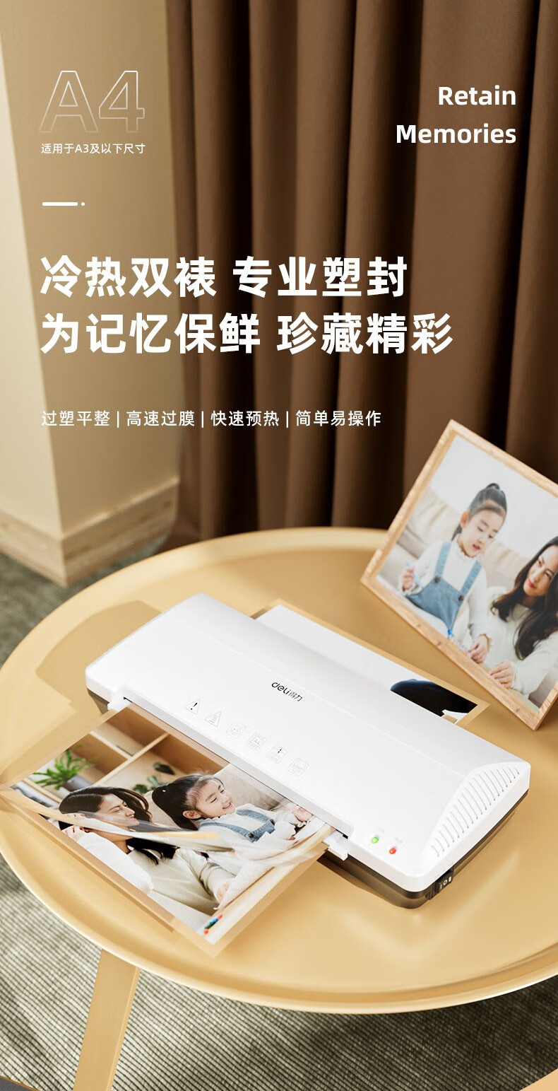 得力(deli)家用過膜機(jī) 過塑膜A4家用照片塑封機(jī) 過膠機(jī) 菜單文件照片覆膜過塑機(jī)3898(黑白混發(fā)) 計價單位:臺