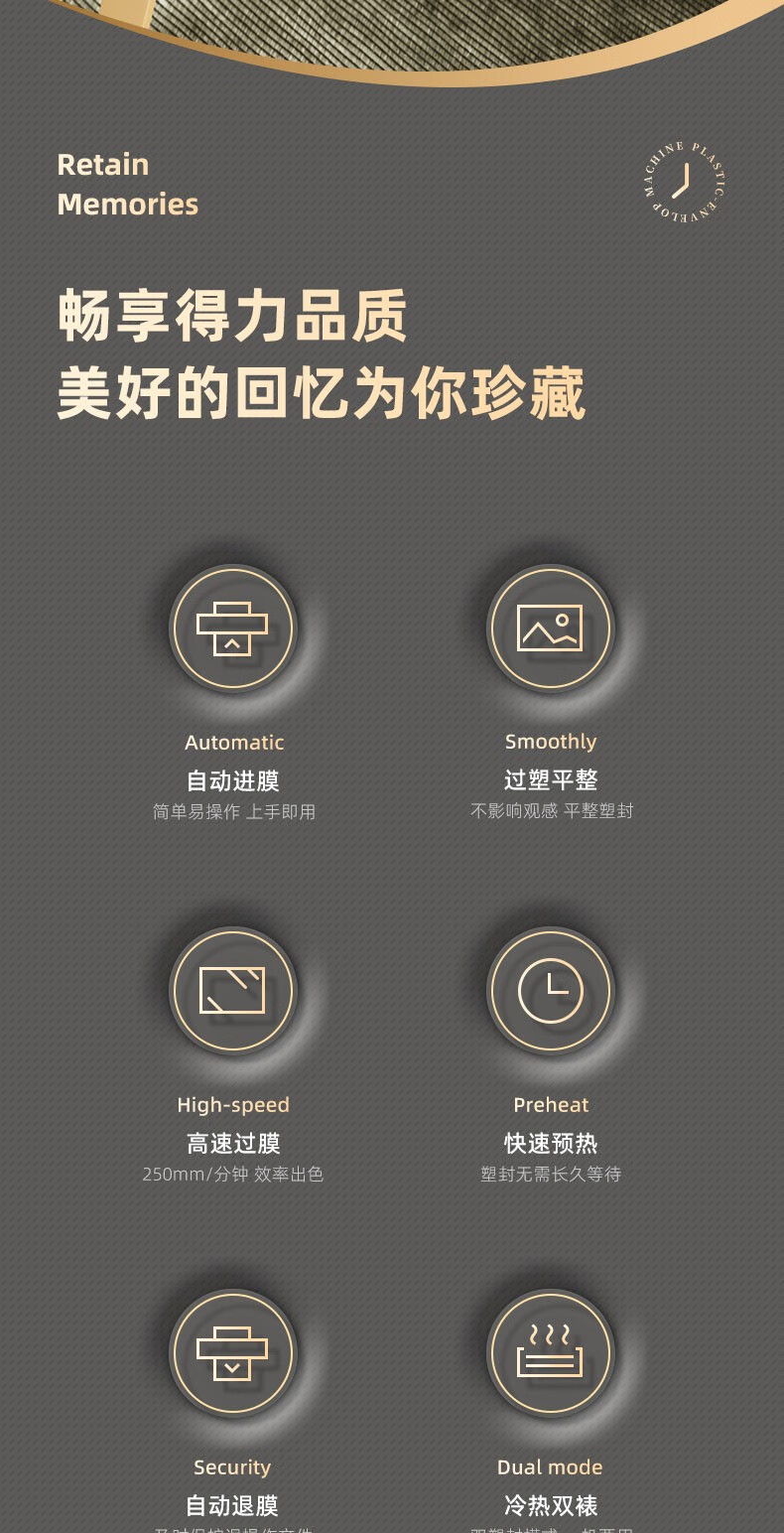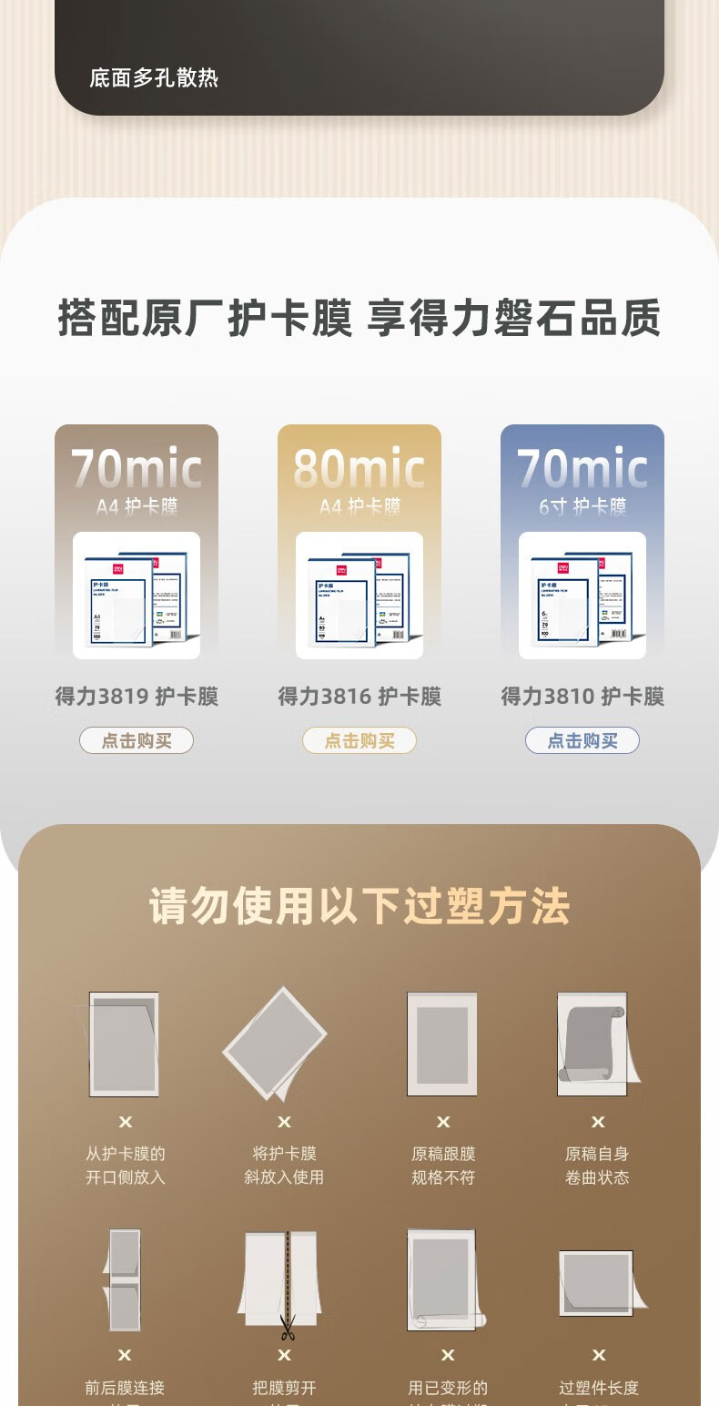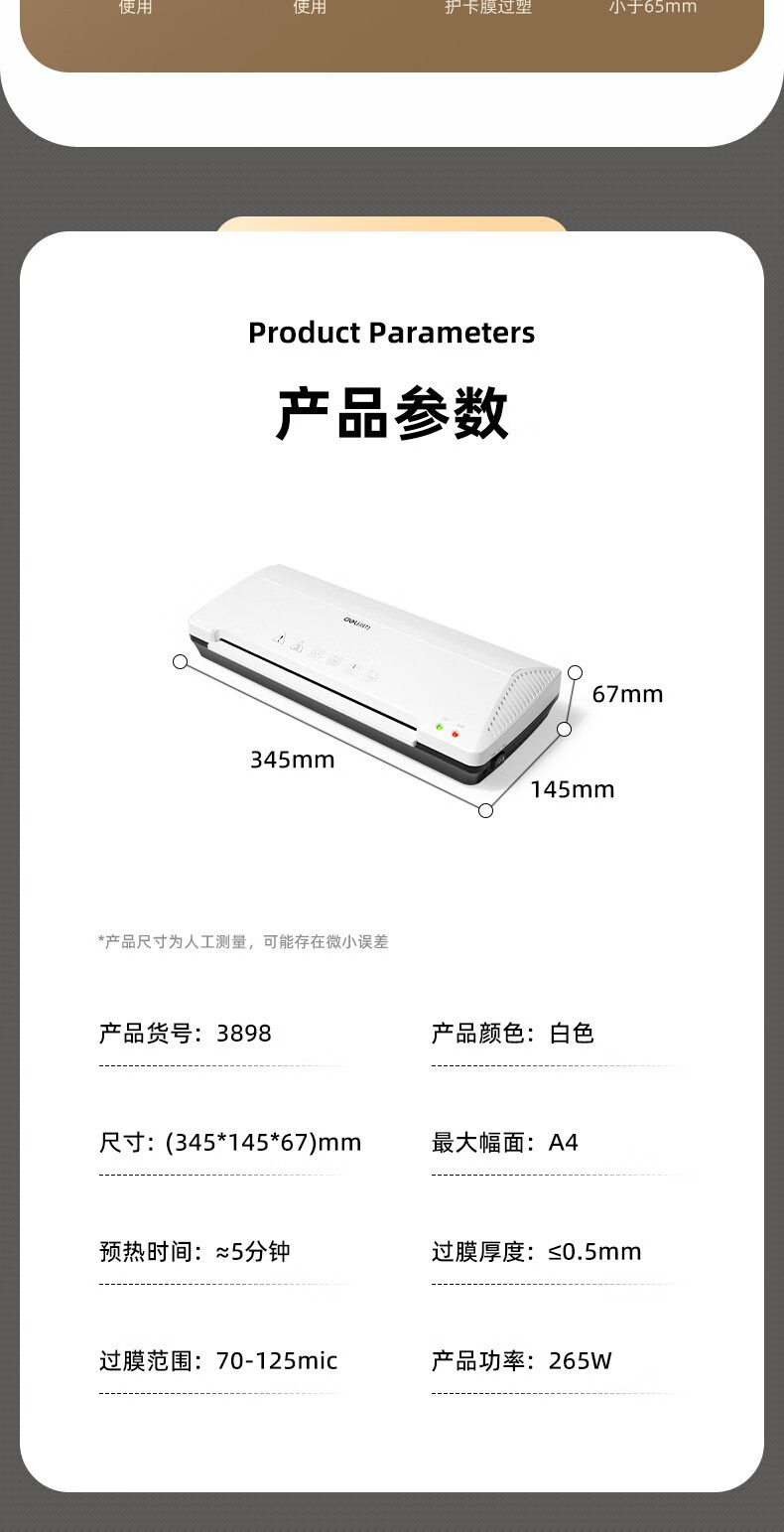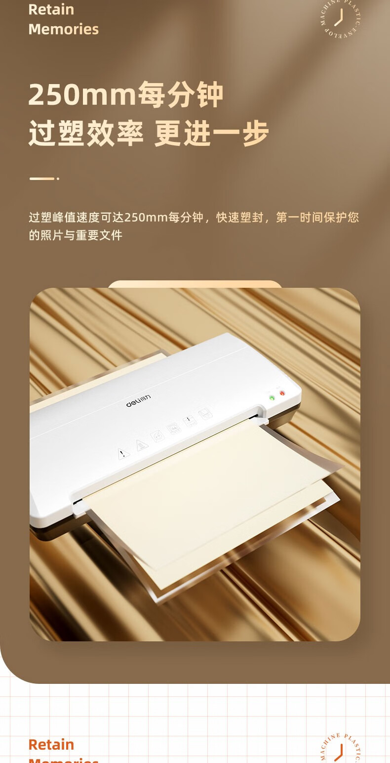 得力(deli)家用過膜機(jī) 過塑膜A4家用照片塑封機(jī) 過膠機(jī) 菜單文件照片覆膜過塑機(jī)3898(黑白混發(fā)) 計價單位:臺