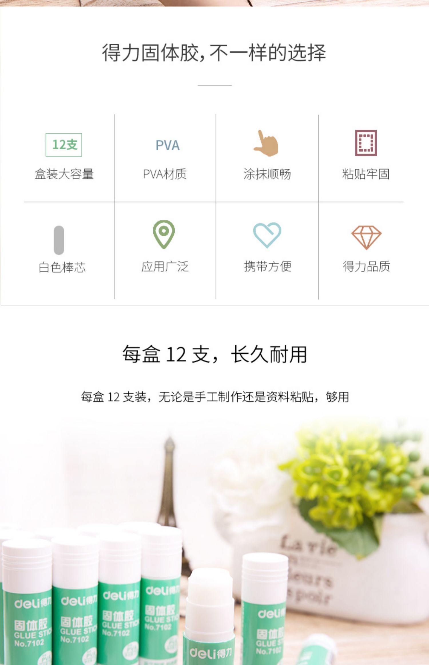 得力(deli)21g高粘度PVA固體膠水/膠棒 快干耐用便攜 學(xué)習(xí)生活手工DIY 辦公用品 7102