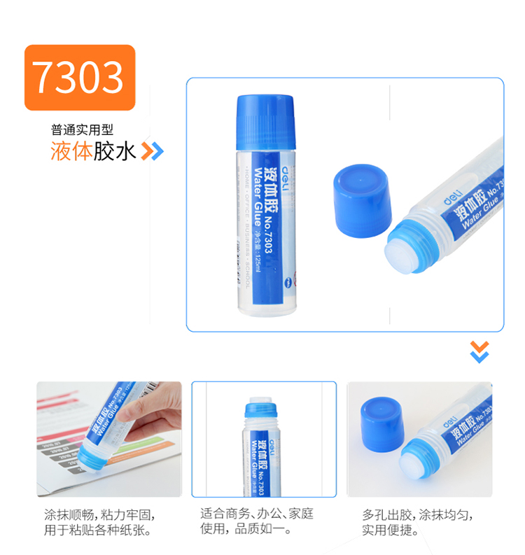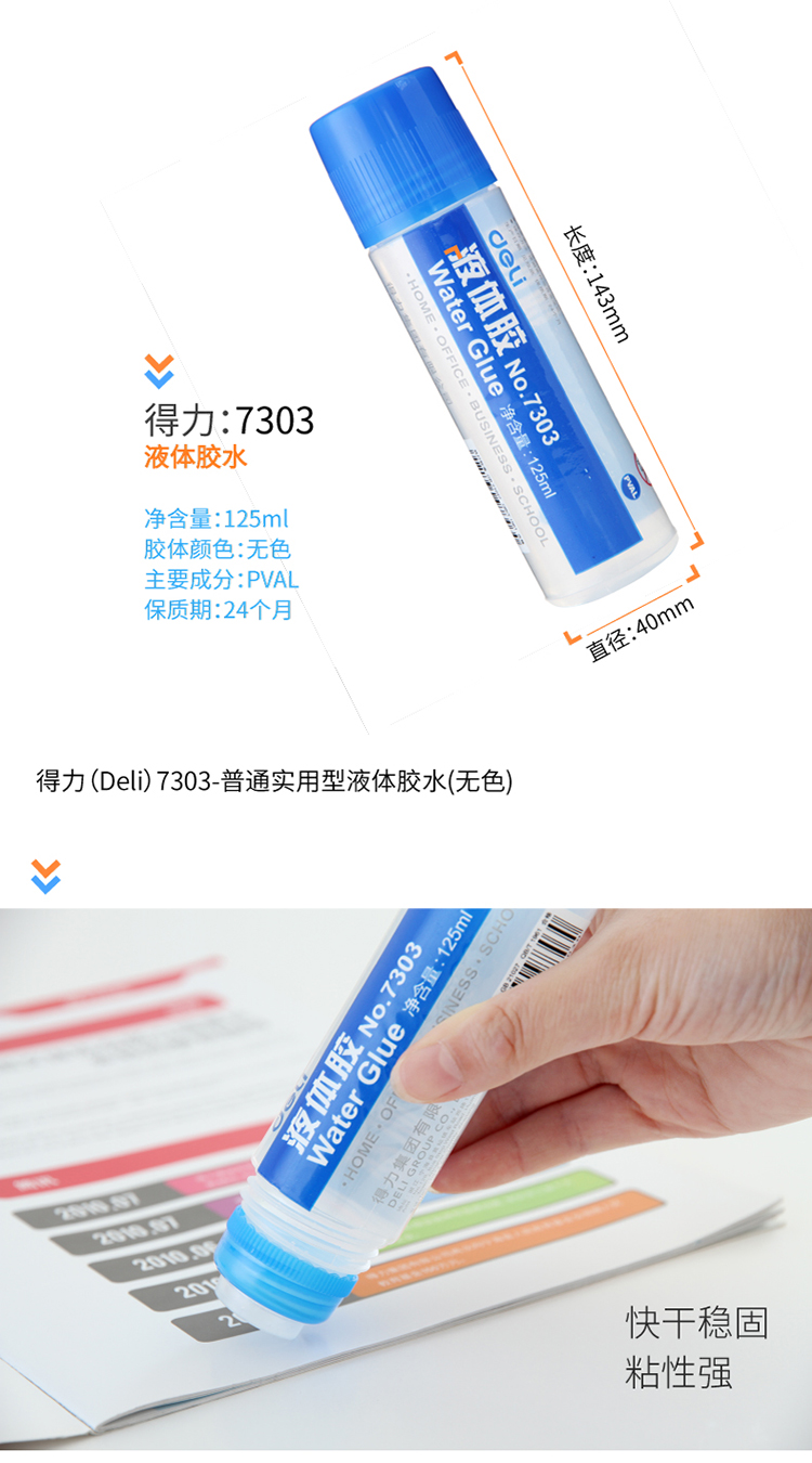 得力(deli)125ml高粘度普通實(shí)用型液體膠水 單瓶裝 辦公用品 7303