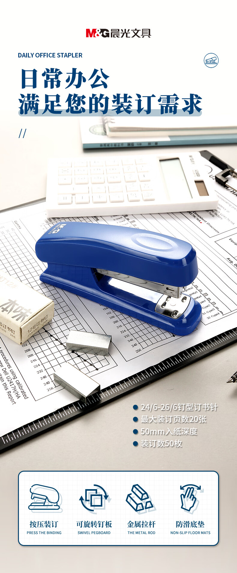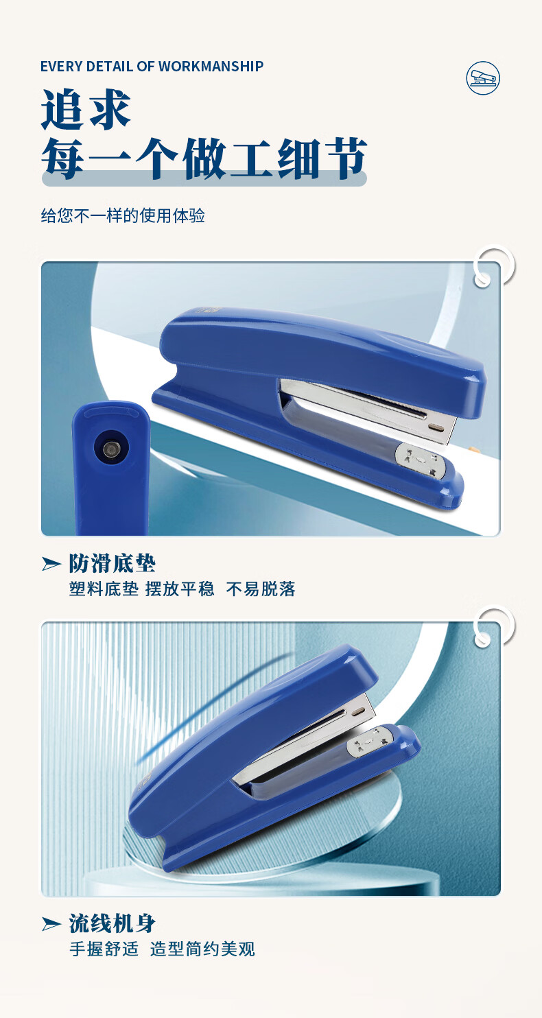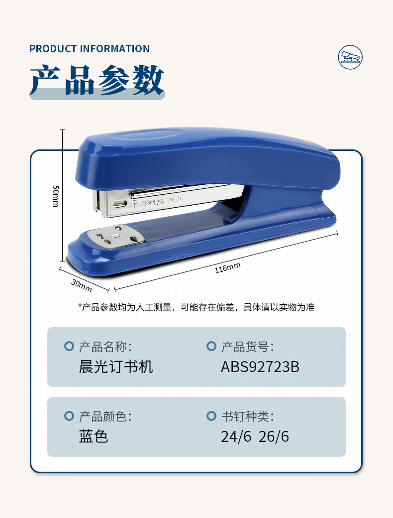 晨光(M&G)文具12#訂書機 耐用便攜訂書器 辦公用品 藍色單個裝ABS92723