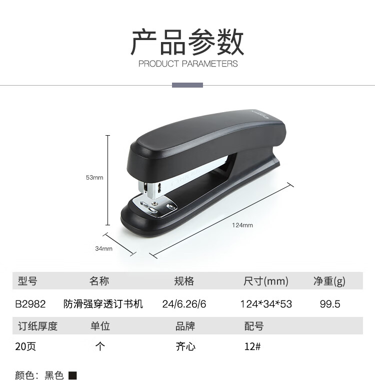 齊心(Comix)耐用型訂書(shū)機(jī)/訂書(shū)器 12# 黑 B2982