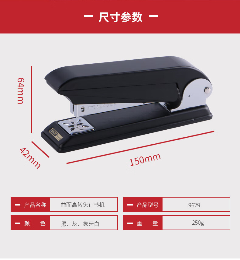 益而高(EaGLE) 大號訂書機 旋轉(zhuǎn)訂書器(24/6 26/6書針)360度旋轉(zhuǎn)頭訂書機 9629 大號旋轉(zhuǎn)訂書機(灰白黑顏色隨機)