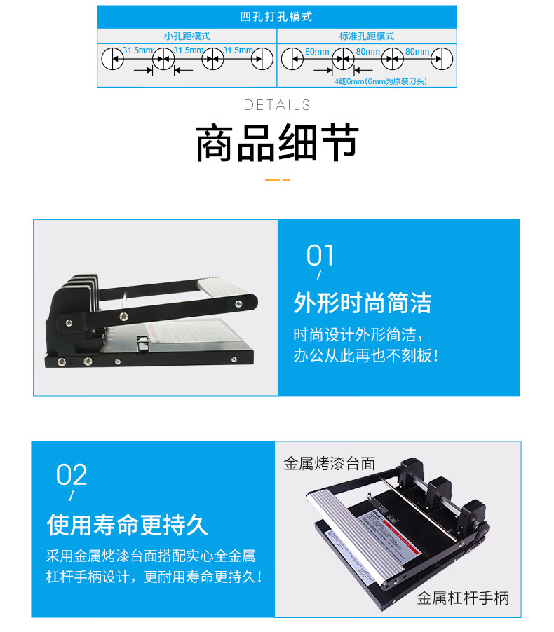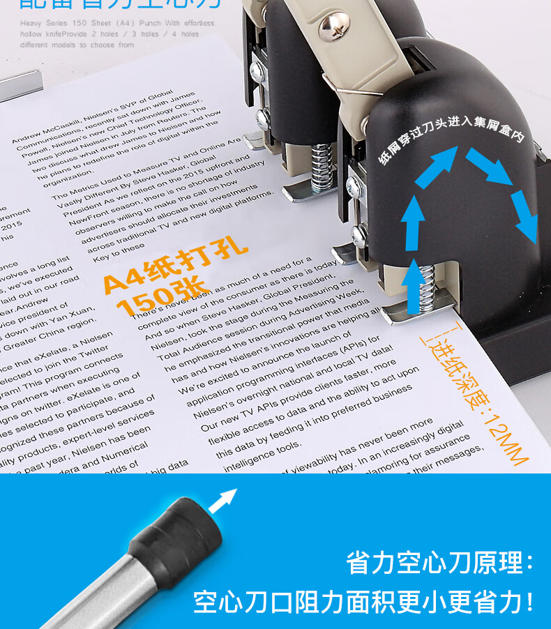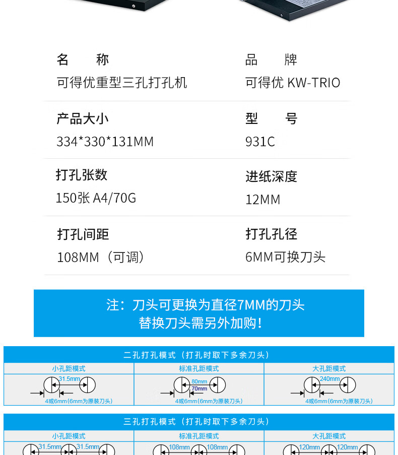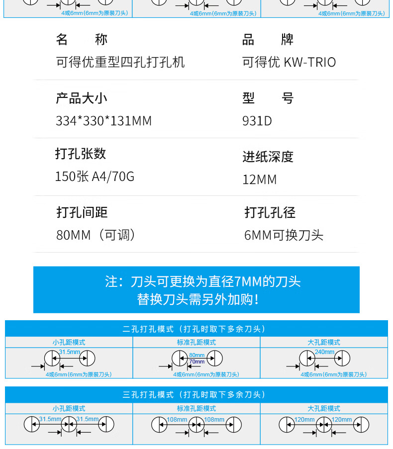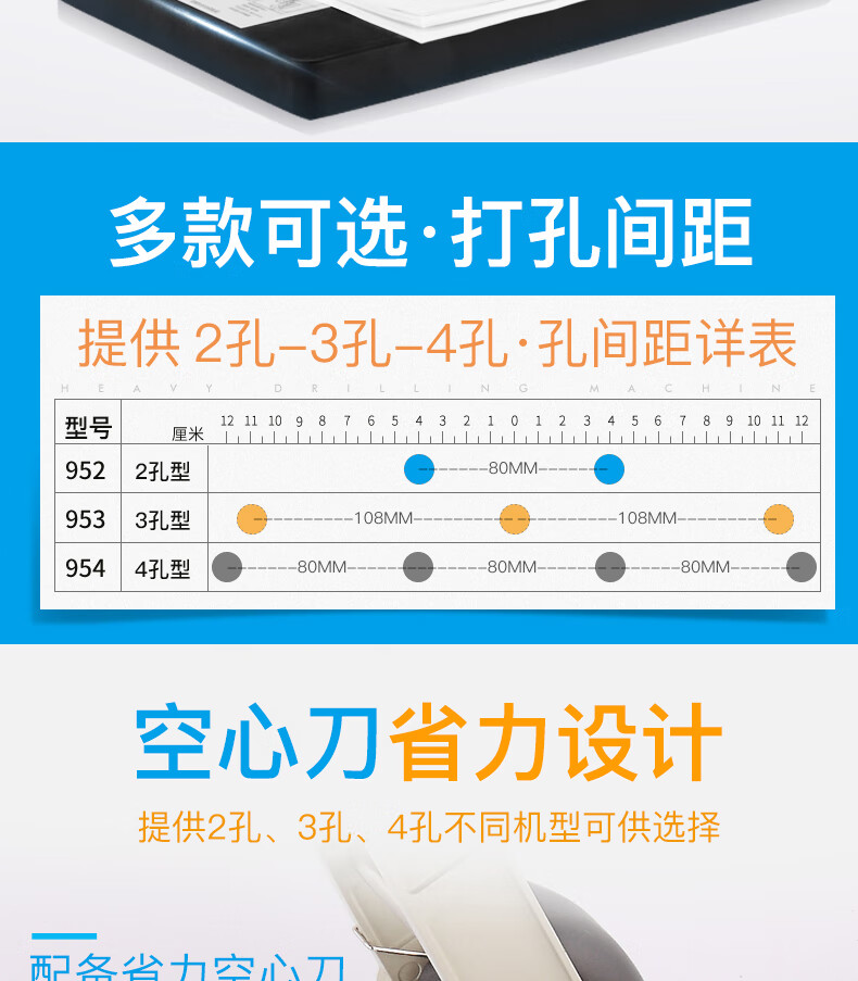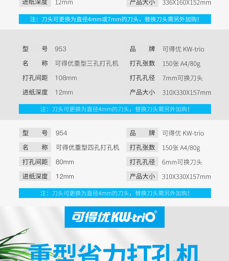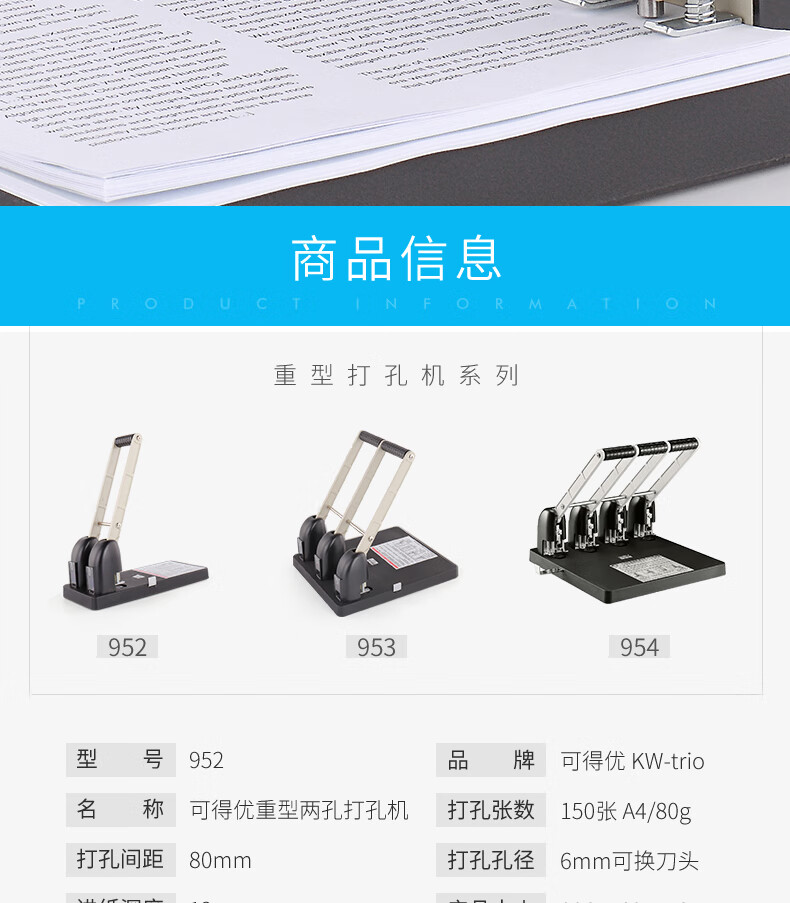 可得優(yōu)(KW-triO)重型省力打孔機(jī)強(qiáng)穿透力行政標(biāo)準(zhǔn)83mm打孔器可打150頁(yè)刀頭可換打洞器 952【雙孔】