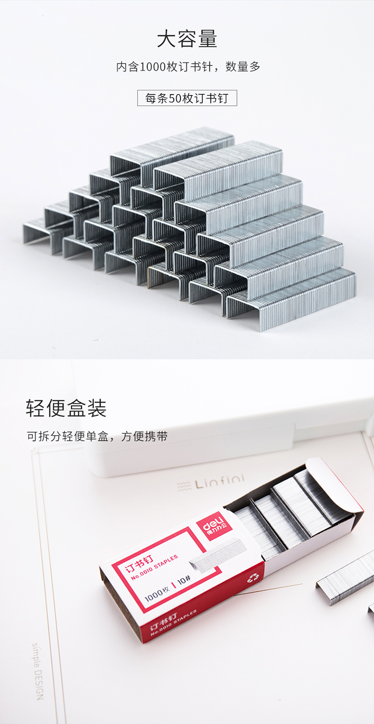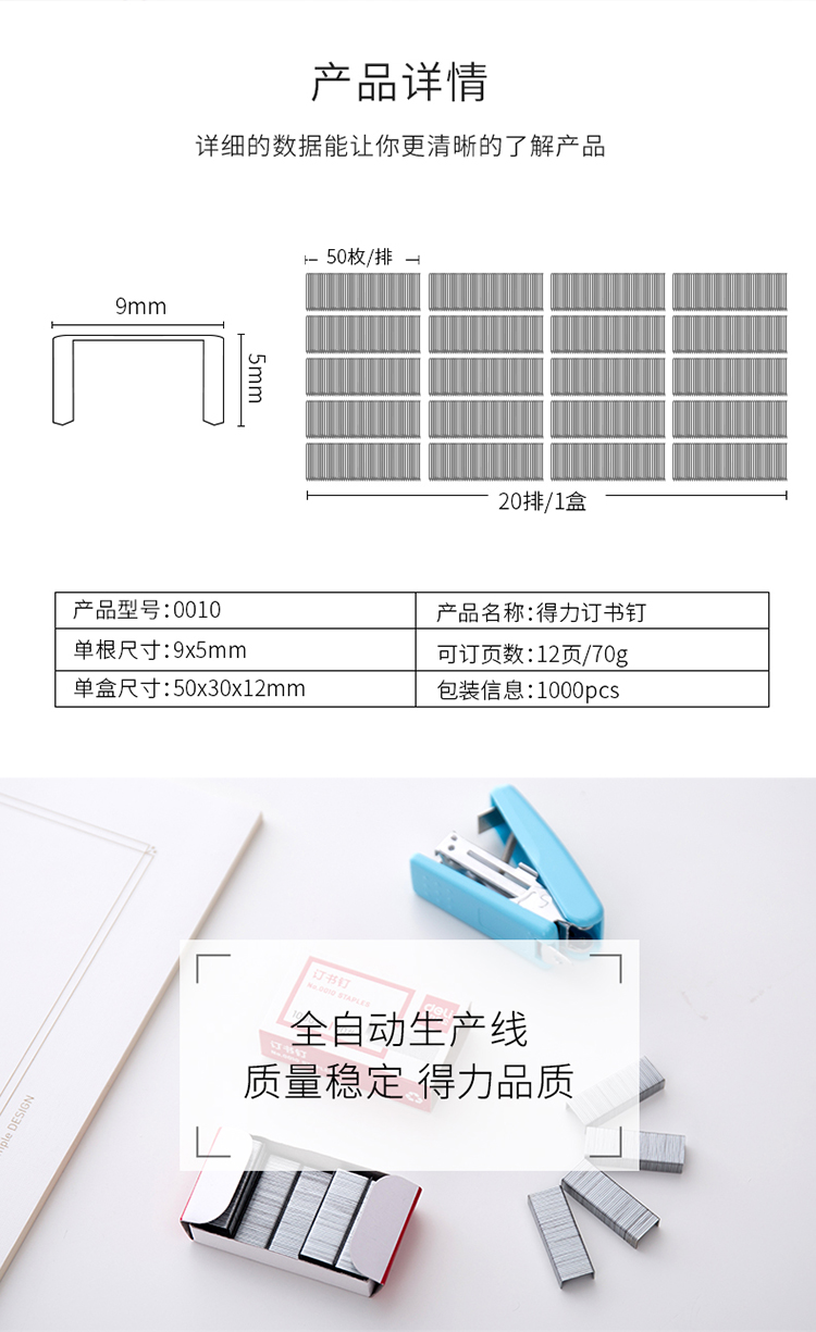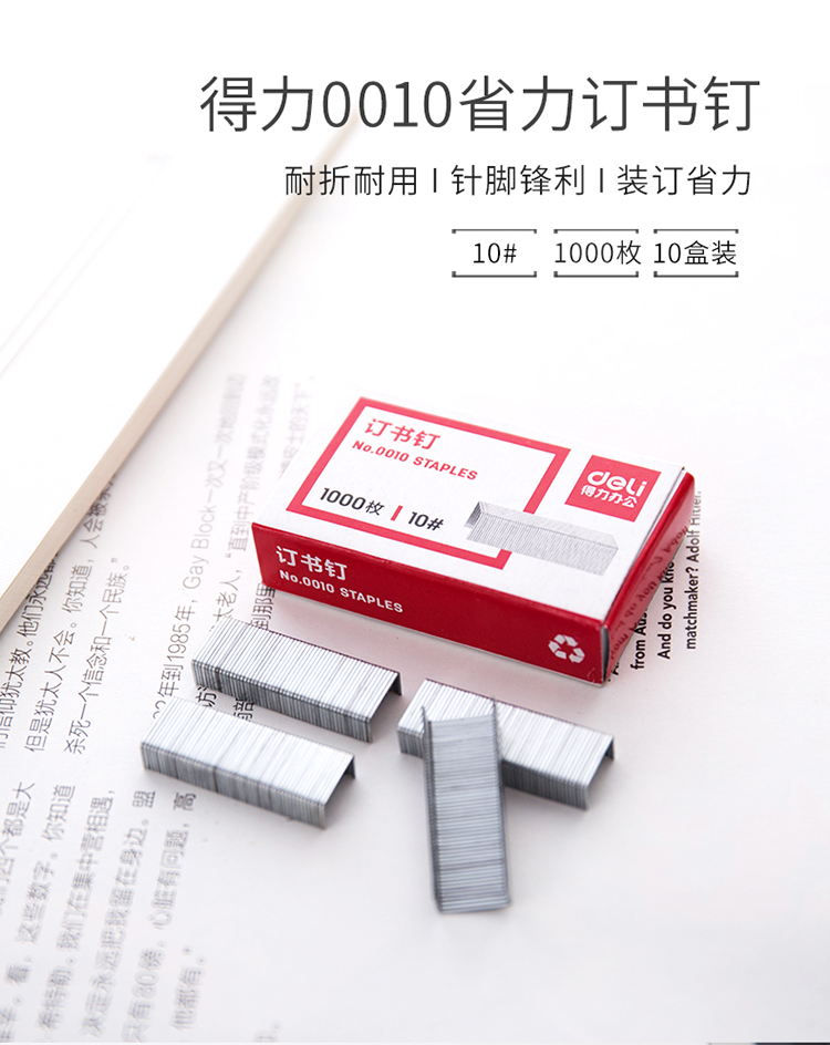 得力(deli)10#訂書釘/訂書針 1000枚/盒 辦公用品 0010