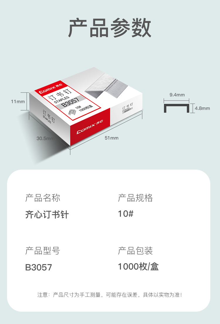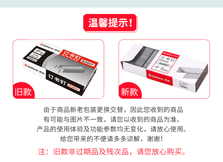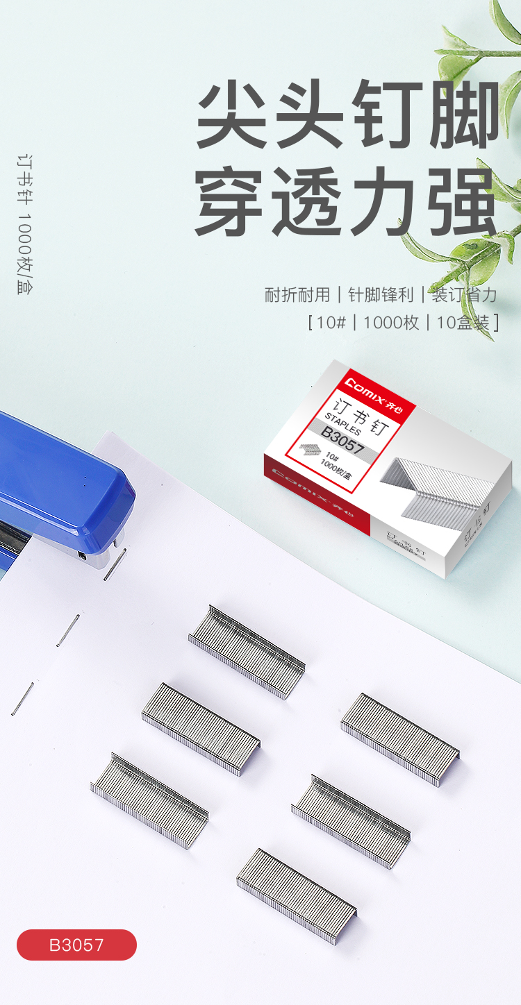 齊心(Comix)訂書(shū)釘/訂書(shū)針 1000枚/盒 大容量 10#訂書(shū)機(jī)通用規(guī)格 B3057