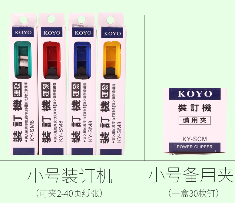 KOYO辦公檔案財(cái)務(wù)裝訂機(jī) 推夾器補(bǔ)充夾 裝訂夾 小號(hào)裝訂機(jī) 推釘機(jī) 推釘器連發(fā)夾紙機(jī) 顏色隨機(jī)1個(gè) KY-SM8小