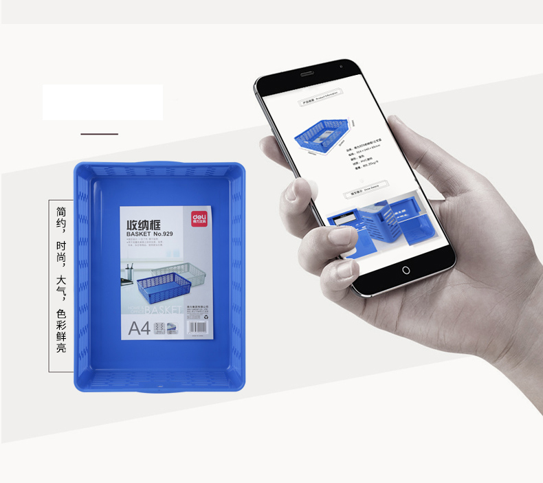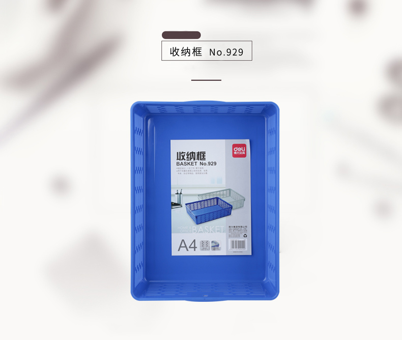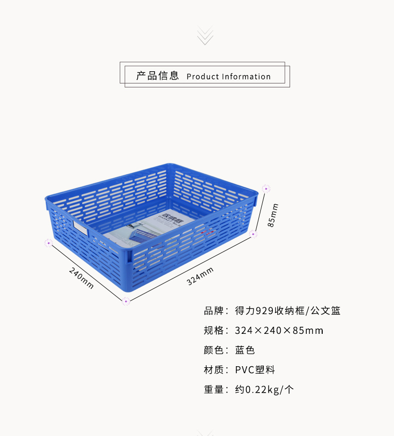 得力(deli)929 A4塑料文件籃/資料框/收納籃/文件筐/資料筐/發(fā)票筐 辦公用品 藍色