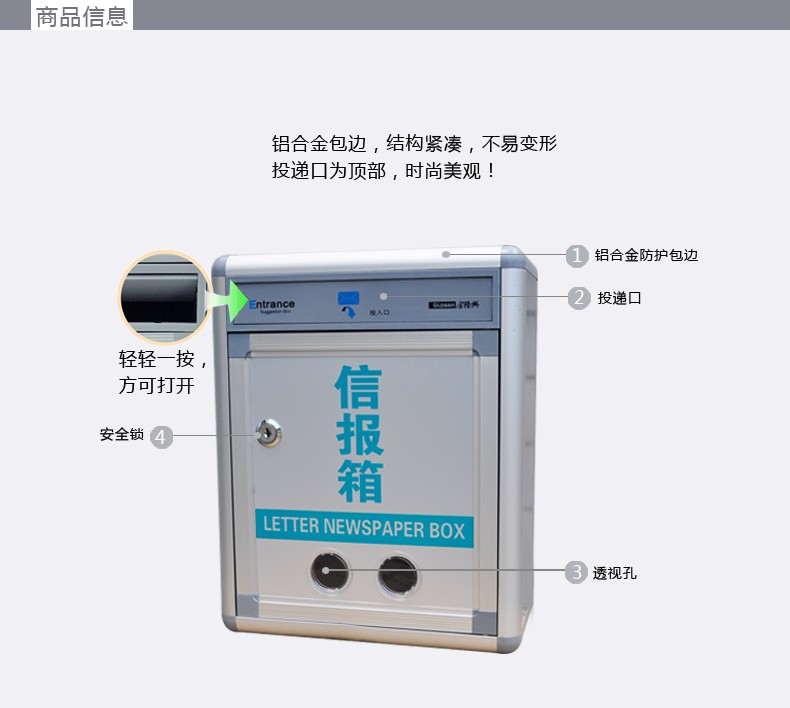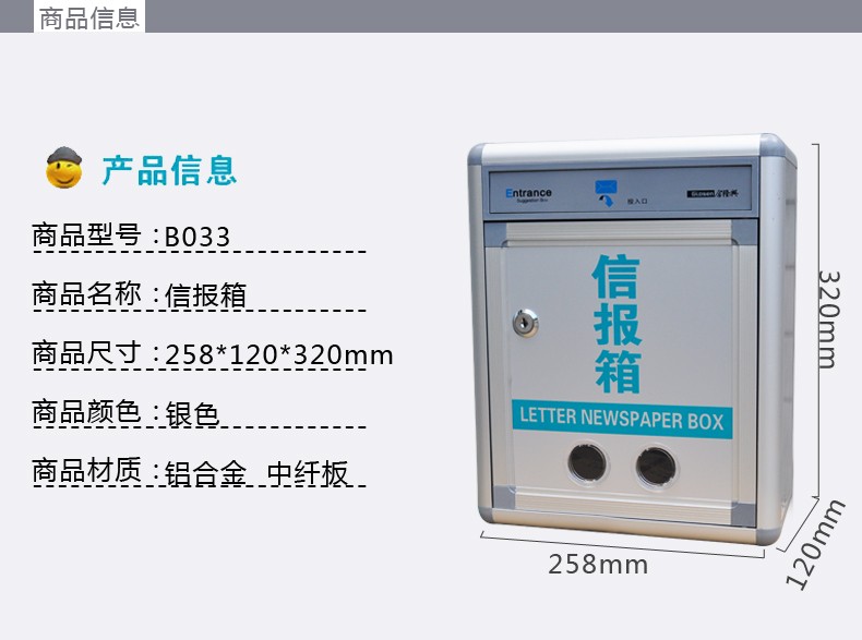 金隆興 意見箱舉報(bào)投訴帶鎖掛墻室外企業(yè)員工報(bào)箱信箱大小號(hào)透明創(chuàng)意愛心捐款樂捐募捐可定制投票箱總經(jīng)理箱 B033大號(hào)(信報(bào)箱)