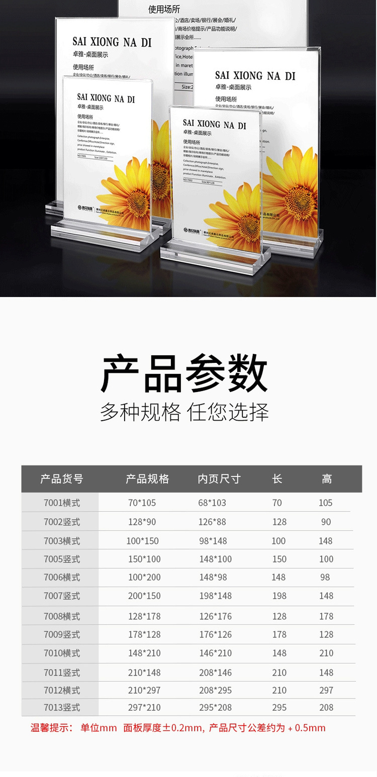 賽兄納弟-T型桌面臺(tái)簽/高檔亞克力臺(tái)簽/座牌/會(huì)議牌/展示牌 豎版 7011(210*148mm)