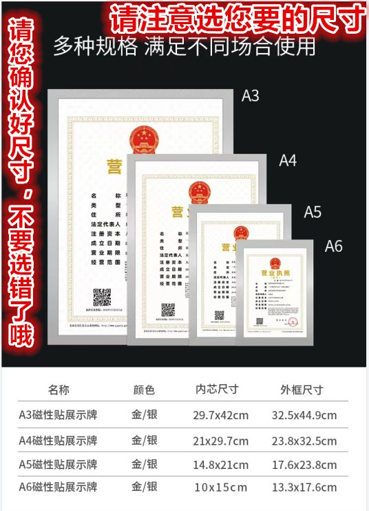 德仕通(dston)磁性展示貼營業(yè)執(zhí)照框保護套 公告欄磁力墻貼紙 a3中介房地產(chǎn)廣告展示牌 A3銀色3126(適用內(nèi)心297*420mm)
