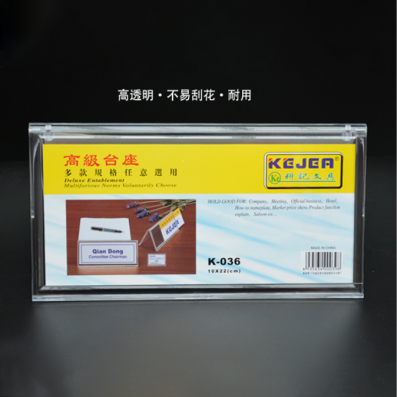 科記文具 亞克力展示牌 會議桌牌 透明三角臺卡廣告座位會議牌 塑料V型雙面桌簽K-036 100*220MM