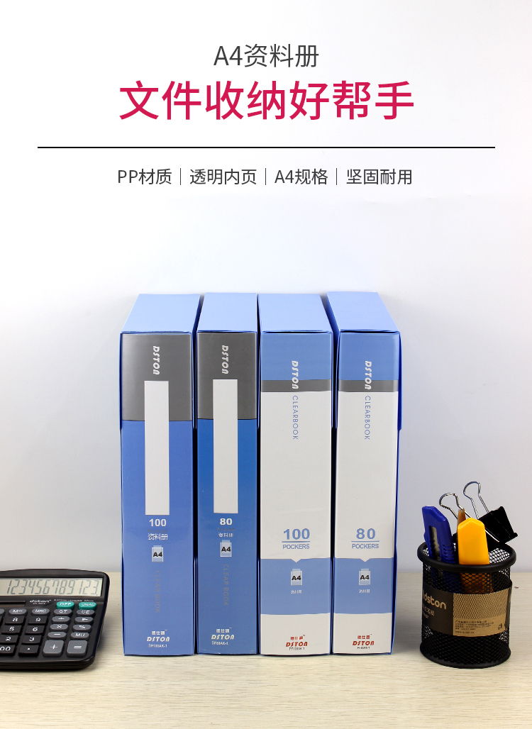 德仕通(dston)100頁DF100AK-1 藍色 標準型資料冊加厚型 活頁插袋文件收納冊 辦公用品